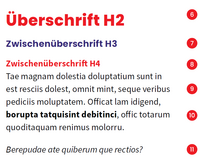 - Zwischenüberschrift H4: Source Sans Bold, rot